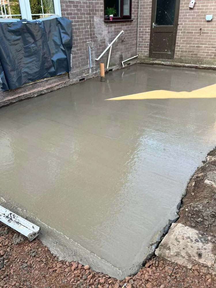 Our team began by removing the old structure before installing a new raft foundation slab to ensure a solid base for the build. The extension was then constructed with large 5m anthracite bifold doors, opening the space to the garden and allowing natural light to flood the room.