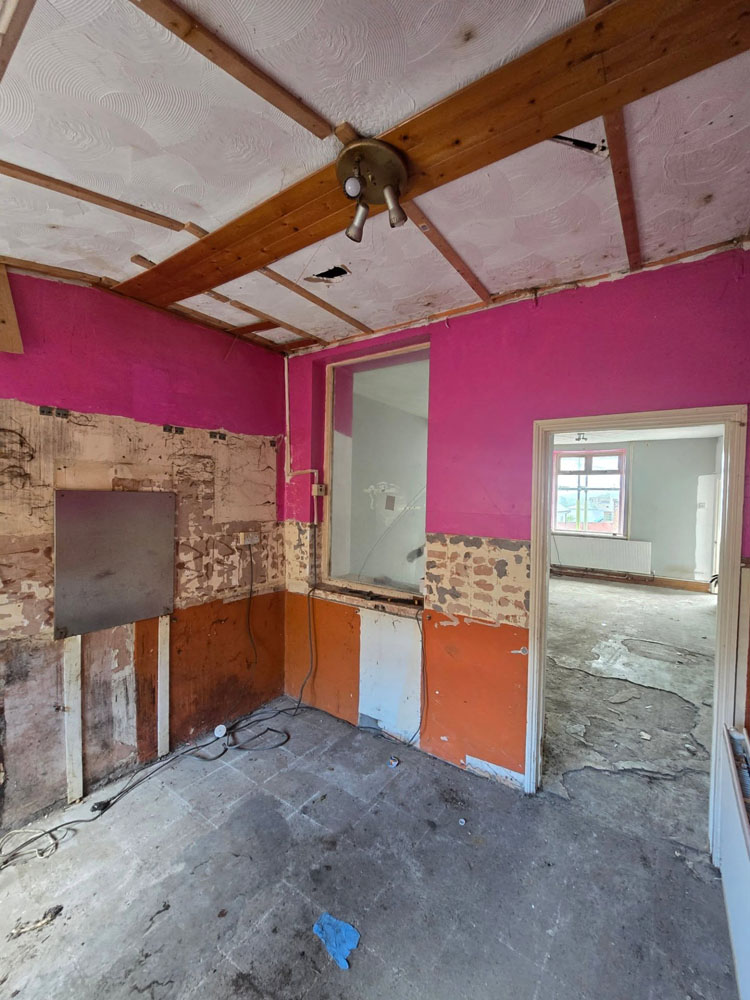 The interior layout was modernised by opening up the living room and kitchen, creating a brighter, more spacious open-plan living area suited to modern family life. We also dropped ceilings where required to allow for updated electrics, insulation, and a cleaner interior finish.