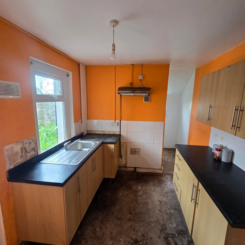 To begin, the kitchen layout was reconfigured with the installation of a new stud wall partition, allowing the room to be reshaped and the cabinetry layout to work more efficiently. A full electrical rewire was also carried out to support new appliances, lighting, and modern kitchen requirements.